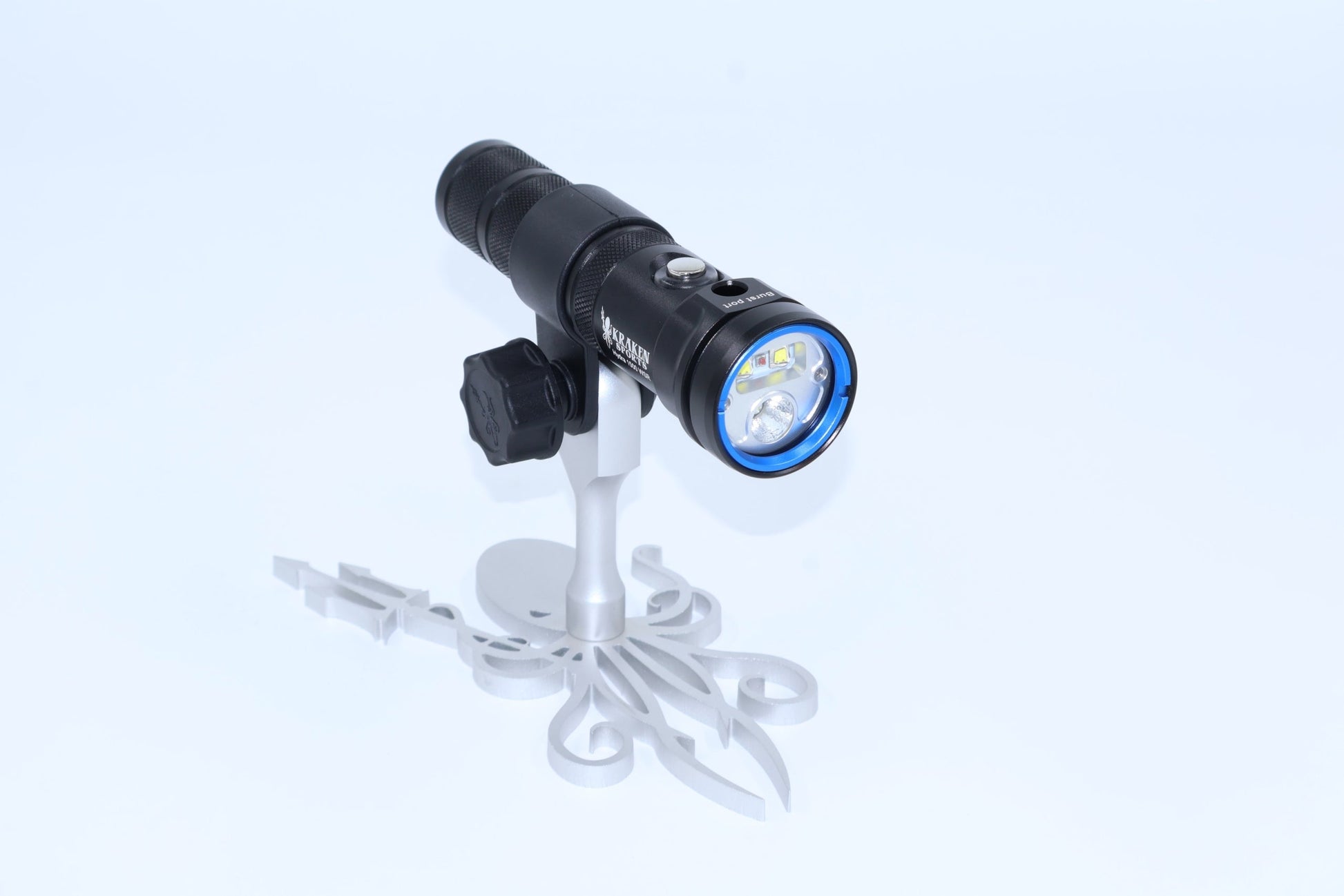 This light replaces our old Hydra 1200. We’ve upgraded the battery to a 21700 which let us increase the power to 1500 lumens. The new battery also has a USB-C port built in to directly charge the battery without the need for a cradle. The Hydra 1500 has flood, spot, and red modes making it a very versatile tool as a focus light or normal dive torch. It is equipped with an auto flash-off feature which can be turned on, or off at the users choice The auto flash-off means the light shuts off when a strobe fires. This light is also a favorite of many macro shooters for the ability to use it for back and side lighting as well as having both flood, and spot beams built in to one light.