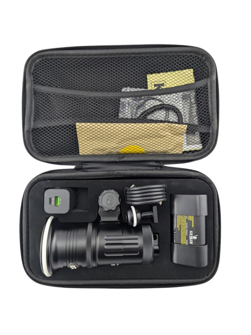 The Kraken Solar Flare Mini 10K Lumen Light features the latest in LED technology, using a COB LED for a perfect color temperature and a smooth, even beam with no hot spots—ideal for capturing stunning underwater video.